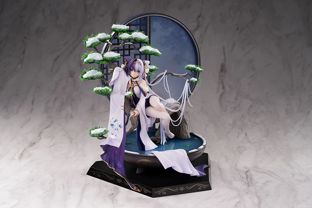 Ying Swei from the popular smartphone game “Azur Lane” is now a lovely figure from Hobby Max! In her popular dress-up costume “Snowy Pines”, she embodies the charm of the Chinese New Year. With one of her sleeves and her rear skirt draped across the boughs of the blossoming plum tree behind her. The water in the basin below her to add a splash of intense color to the composition, and you’ll love her beautiful expression.